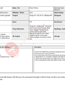 Professional spec & SOPs documents with precise measurements, dilution, glassware, guidance, and preparation flow.